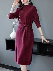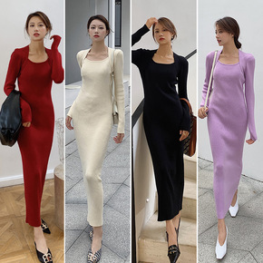 2118112-蔚蓝慵懒风性感开叉复古针织弹力大码...