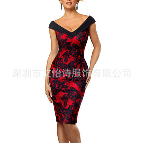 2020速卖通亚马逊跨境新款复古撞色优雅花色性感的...