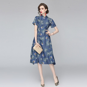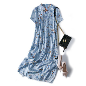 旗袍式真丝连衣裙女桑蚕丝改良版气质立领中国风a字裙...