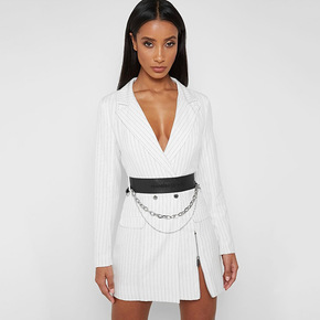 欧美风ins新款开衫轻奢连衣裙女时尚潮牌复古气质条...