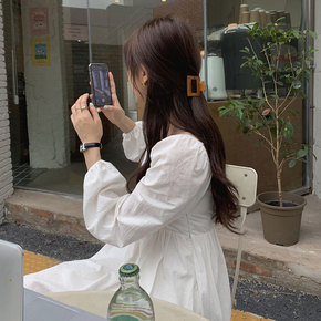 【歌铭】法式复古连衣裙2022春季长袖露背白色裙子...