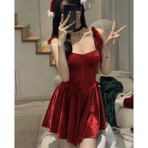 【圣诞约会C位裙】纯欲氛围拉满の2色丝绒吊带裙女2...