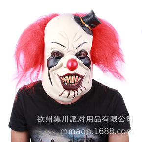 跨境恐怖微笑小丑面具红鼻子恶魔小丑乳胶头套派对面具...