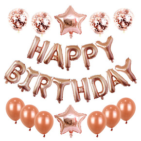 跨境热卖生日派对装饰16寸玫瑰金生日字母气球套装 ...