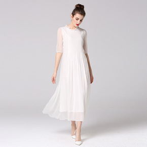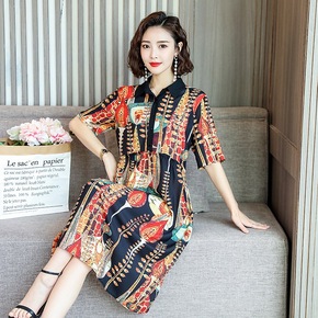 真丝双绉连衣裙2019夏季新款大码宽松遮肉显瘦高档...