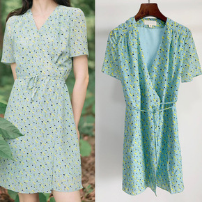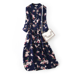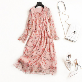 2018春夏新款女装 真丝雪纺印花连衣裙田园风+吊...