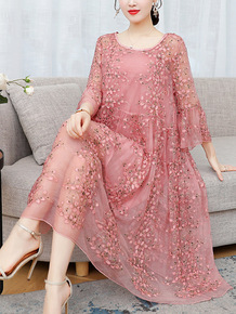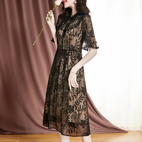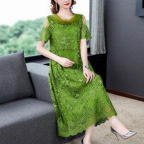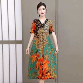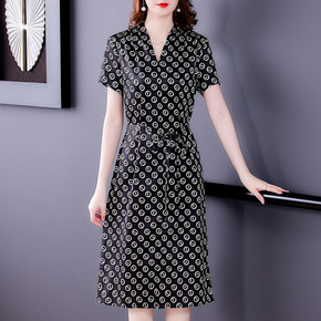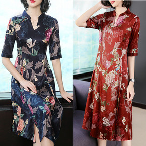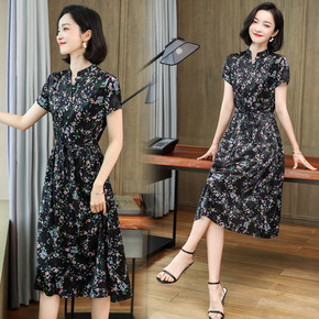 真丝桑蚕丝中袖连衣裙2019新款夏中袖妈妈装...