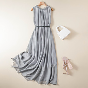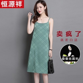 恒源祥内搭真丝背心连衣裙女中长夏新款气质无袖桑蚕丝...