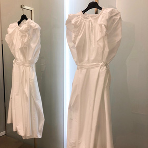 白色真丝连衣裙女装2021年夏季新款系带收腰气质中...
