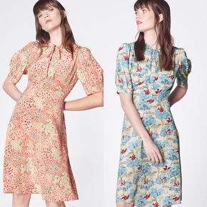 欧S立22夏季新款印花连衣裙修身韩版收腰力品牌折扣...