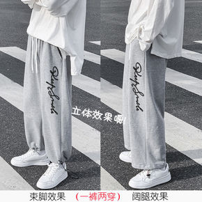 裤子女学生韩版宽松夏季薄款显瘦九分运动裤女休闲阔腿...
