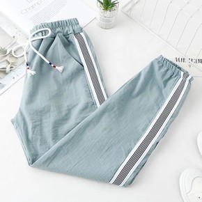 外贸出口款 男士夏季薄款宽松棉麻休闲八分亚麻运动裤...