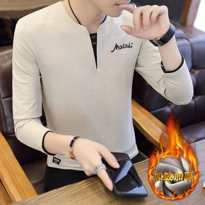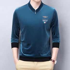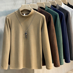 一件代发冬季长袖T恤男士加厚立领卫衣男士金丝绒休闲...