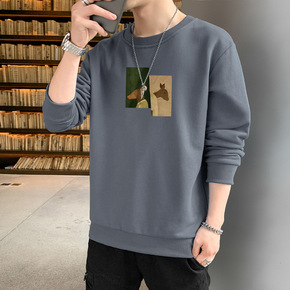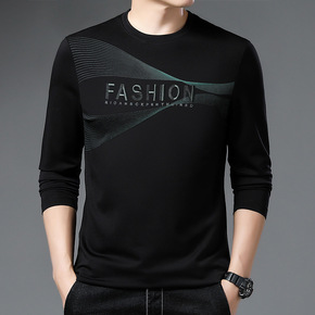 圆领男式长袖T恤春秋新款中青年休闲宽松薄款打底衫男...