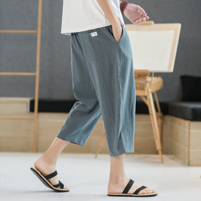 2021夏季冰丝七分裤男中国风棉麻休闲裤潮流大码宽...