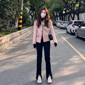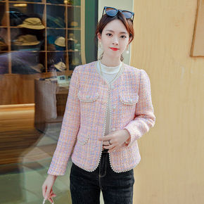 年早春新款高级感精致小香风短款粗花呢粉色外套女秋冬...