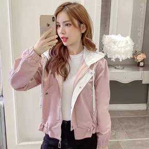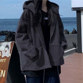 秋冬2021新款韩版宽松加绒加厚拉链连帽盐系外套女...