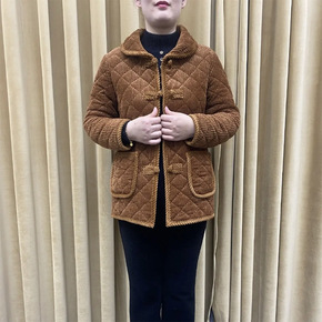 顾文华服装2021冬季复古妈妈装娃娃领灯芯绒加绒加...