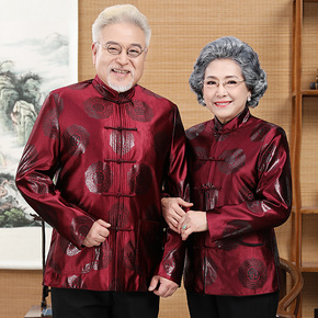 中老年情侣唐装男秋冬爷爷奶奶加绒加厚外套棉袄生日过...