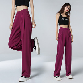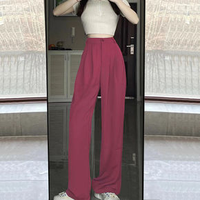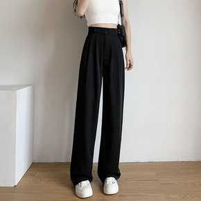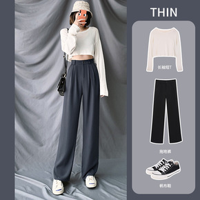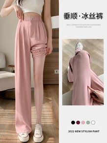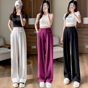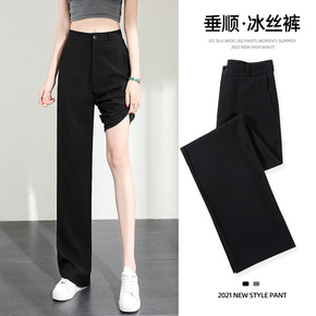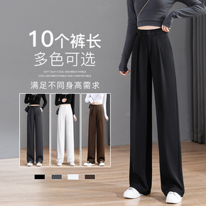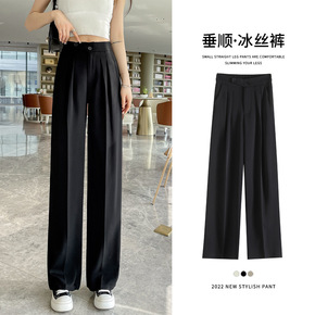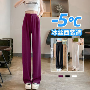 冰丝西装裤女夏薄款小个子拖地直筒裤高腰垂感宽松显瘦...