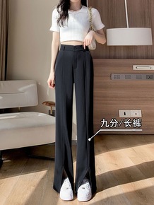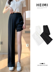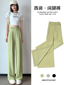 小个子开叉西装裤女2022夏季高腰垂感休闲阔腿裤薄...