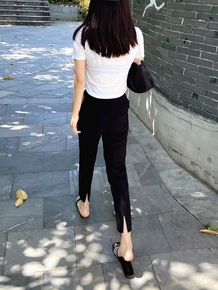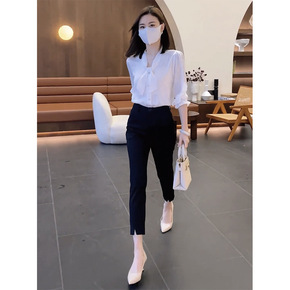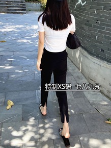 七分小脚开叉萝卜哈伦西装裤女夏新款小个子150cm...