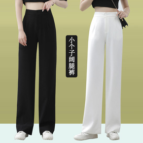 145矮小个子夏装搭配薄款直筒开叉冰丝阔腿西装裤女...