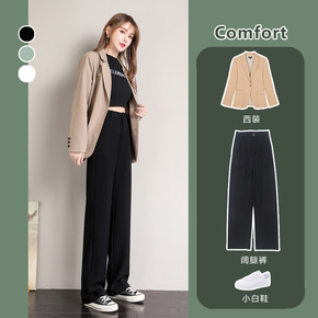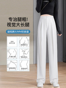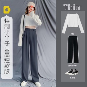 白色西装裤夏小个子阔腿裤女高腰西裤显瘦直筒春秋垂感...