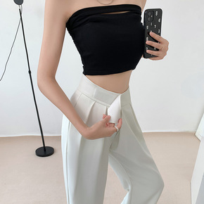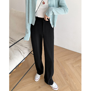 秋季好穿时髦垂坠感西装裤女小个子高腰魔术贴防皱冰丝...