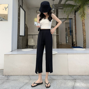 2022春夏新款韩版高腰加长直筒开叉微喇阔腿小个子...