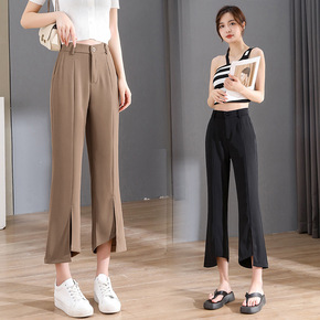 开叉微喇裤女夏季2022新款高腰垂感小个子九分女裤...