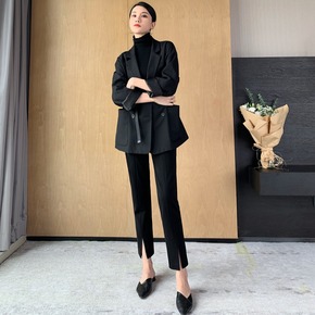 微喇开叉西装裤女高腰显瘦150矮小个子显高女装xs...