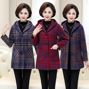 春秋冬新款格子毛呢外套女妈妈装羊绒大衣修身立领羊毛...