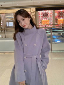 2021年新款双面羊绒大衣女羊毛双面呢秋冬休闲中长...