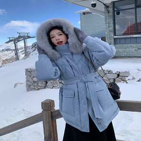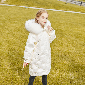 品牌中长款羽绒服女2021年冬新款白鸭绒时尚修身外...