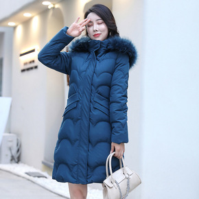 白鸭绒貉子毛领羽绒服女中长款2020冬装收腰加厚保...