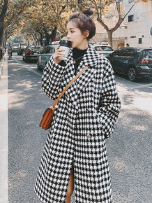 千鸟格毛呢外套女2021年冬新款中长款小个子法式显...