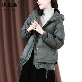 反季白鸭绒羽绒服女冬短款2021年新款时尚显瘦连帽...