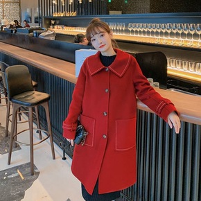 毛呢外套女中长款2020新款妮子大衣女明星同款双面...