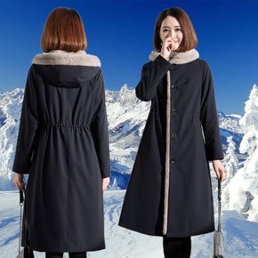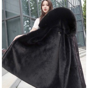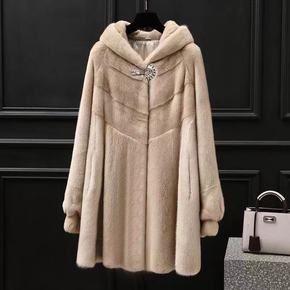 大衣女皮草外套中长款皮毛一体连帽大摆海宁冬装...