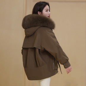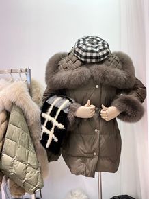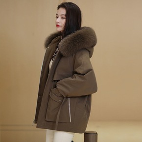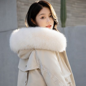 2021新冬季皮草女芬兰整皮狐狸毛白鸭羽宽松羽绒服...