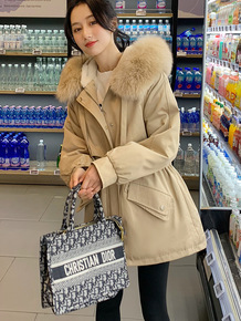 专柜同步货2021新款冬季中长款可拆卸大毛领加厚外...