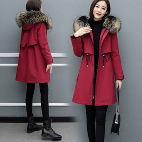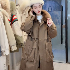 新款仿皮外套女装中长款派克服可拆卸皮毛一体休闲大衣...