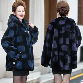 代发方块妈妈冬装仿貂绒外套中老年女装高贵洋气皮草大...