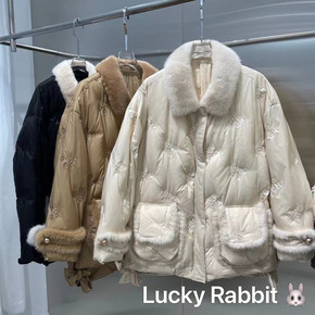 2021冬季新款海宁水貂毛领皮草大衣绣花潮品时尚中...