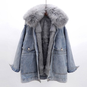 今年2021冬羽绒服牛仔狐狸毛女中长款年轻款皮草外...