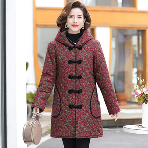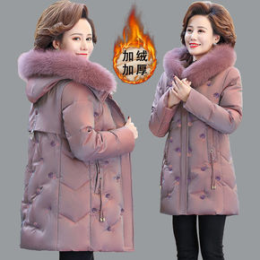 时尚中年妈妈冬装中长款棉衣外套中老年女装加绒加厚羽...