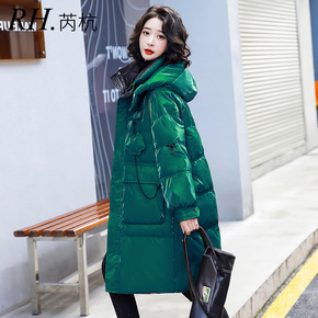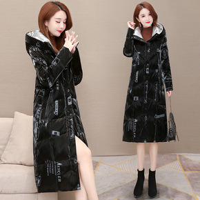亮面免洗羽绒服2021年新款女冬中长款白鸭绒高端洋...