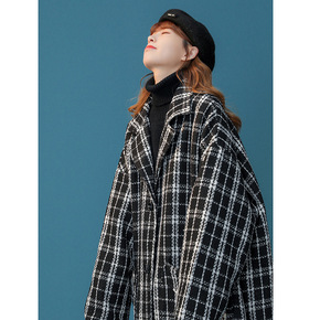 格子毛呢外套女秋冬季加厚2021新款爆款复古中长款...