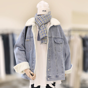 大码女装胖mm羊羔毛牛仔外套女秋冬棉衣棉服加厚加绒...